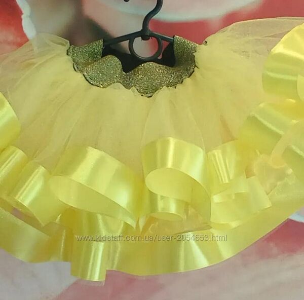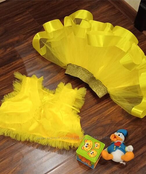 Неймовірно яскрава спідничка з підкладкою та атласною стрічкою. Та жилетка обшита фатином. Пошито власноруч.Чудовий варіант костюма курча, сонечка або соняшника Можна придбати костюм разом а можна окремо спідницю чи жилетку.