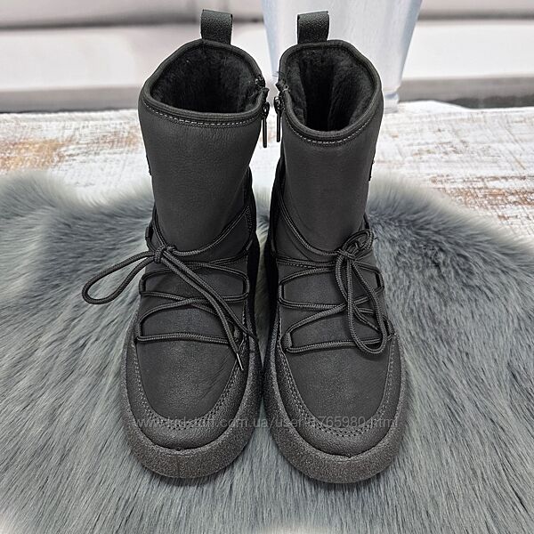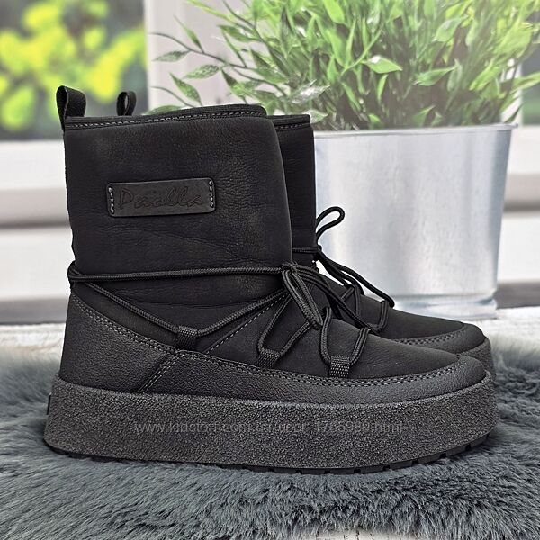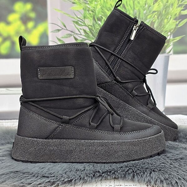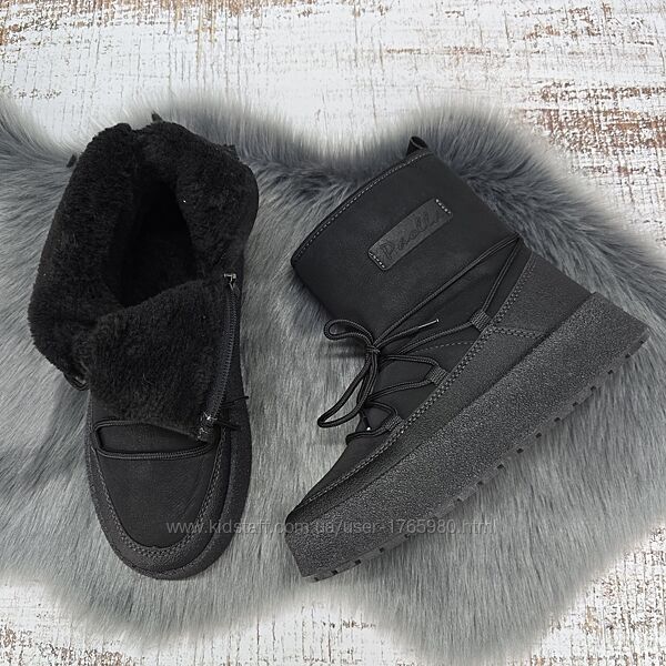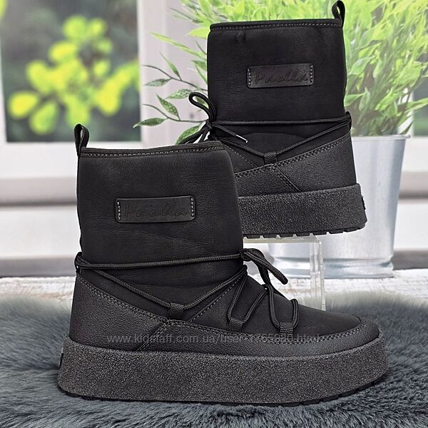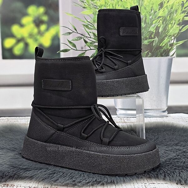 Женские зимние угги Paolla выполнены из искусственного нубука, имитирующего дубленку. Модель черного цвета оснащена удобной боковой молнией и декоративной шнуровкой. Внутри — густой искусственный мех, который способствует сохранению тепла в холодный сезон.Подошва из ПВХ (поливинилхлорид) толщиной 3–4 см имеет рельефный протектор, что помогает при ходьбе по заснеженным или влажным поверхностям. Высота голенища составляет 17–19 см, что обеспечивает дополнительную защиту от холода и ветра.