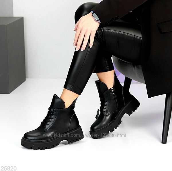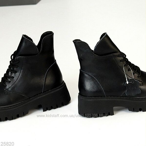 Женсие ботинки берцы, натуральная кожа на тракторной подошве, цвет черный