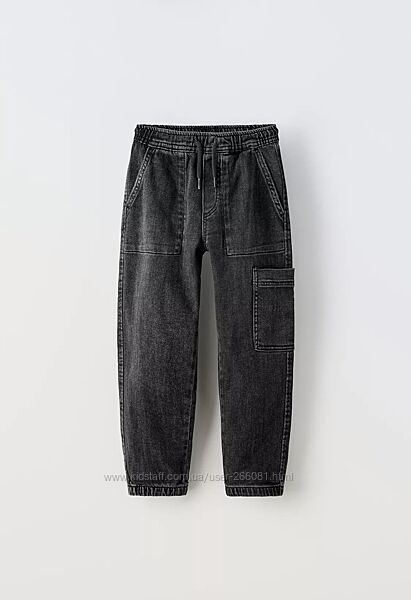 джинси, джинсові штани джогери карго Зара ZaraШтани з еластичним поясом на регульованому шнурку. Передні, бічні та задні накладні кишені, нашивка. Еластичні нижні краї.