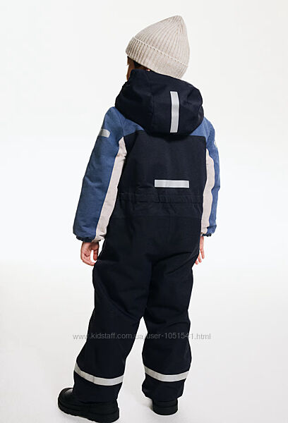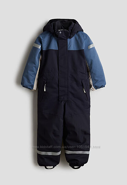 Зимовий комбінезон H&M з водовідштовхувального матеріалу, утеплений синтепоном, підкладка- полієстер, є утяжка на талії , Склад -Поліестер 100%КОЛІР- темно синій -з блакитним