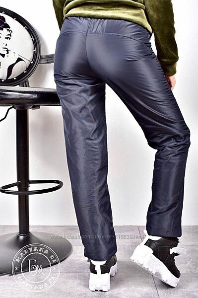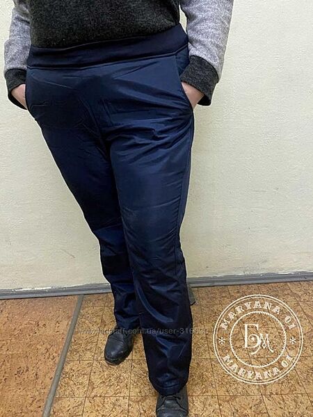 ❤ УТЕПЛЕНІ ЖІНОЧІ ШТАНИ НА ФЛІСІ ❤Нове надходження — жіночі утеплені штани з плащівки великих розмірів. Зручна та практична модель. Пояс — широка еластична резинка, всередині є шнурівка для додаткової фіксації. Штани прямого крою, з кишенями. Зручна посадка, не сковують рухи. Матеріал — дуже щільна плащівка для верхнього одягу, з водо- та вітрозахисним покриттям. Усередині утеплені флісом. Флісова підкладка прошита, не ковзає і не перекручується. Нижня частина штанин із плащівкової підкладки, без флісу — для зручного заправляння в взуття та для швидкого висихання у разі намокання чи забруднення. Плащівка матова, на фото трохи відблискує через спалах фотоапарата.