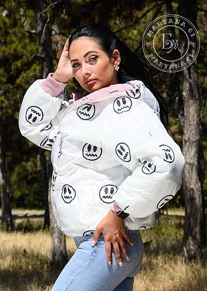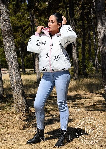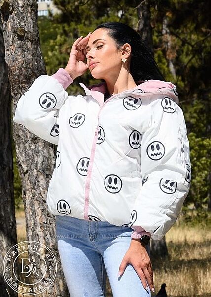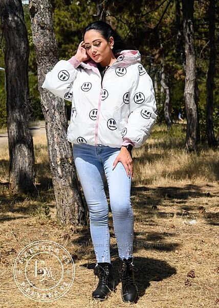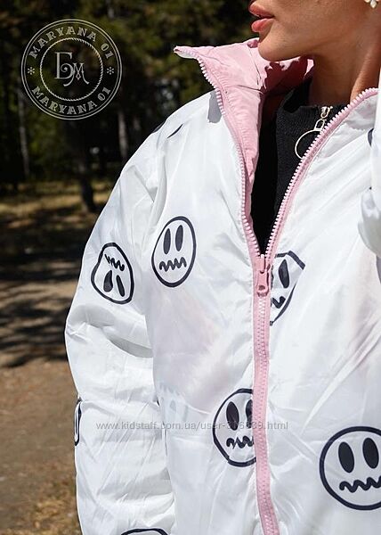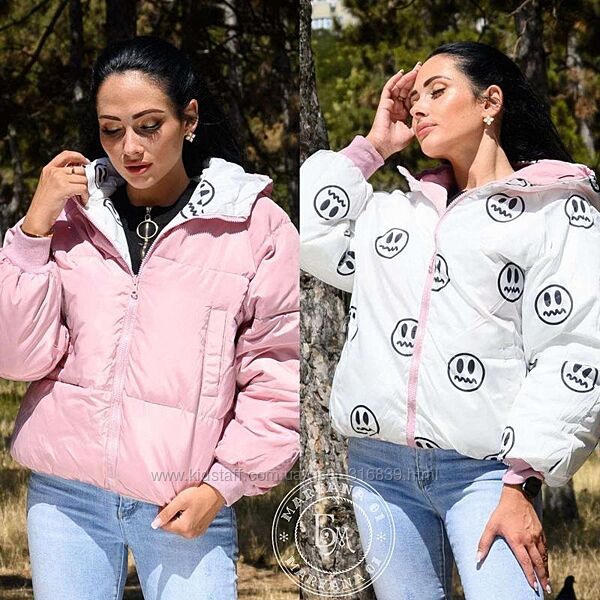 Подробное описание: Двохстороння жіноча куртка смайлик / рожева-біла