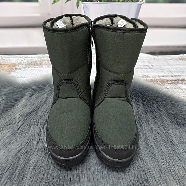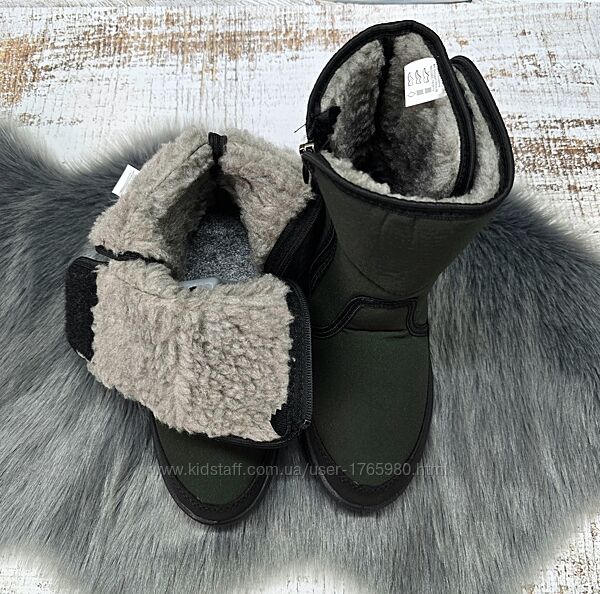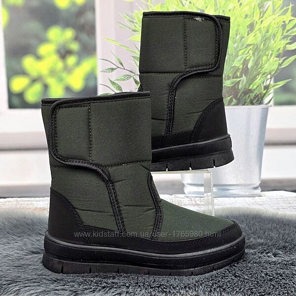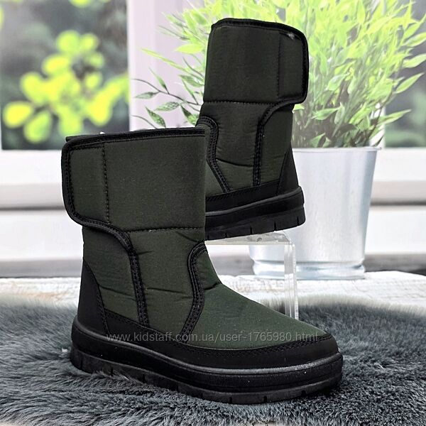 Материал верха: плащёвка (текстиль)Материал подкладки: искусственный мехМатериал стельки: войлокМатериал подошвы: ПВХ (поливинилхлорид)Тип подошвы: плоскаяВысота модели: 17 смВысота подошвы: 2,5–3,5 смЗастёжка: молния + липучкаПреимущества
