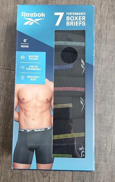 1- 7шт Термо трусы боксеры Влагоотводящие высокотехнологичные Reebok High-Performance Boxer Briefs Оригинал США7 шт черного цвета