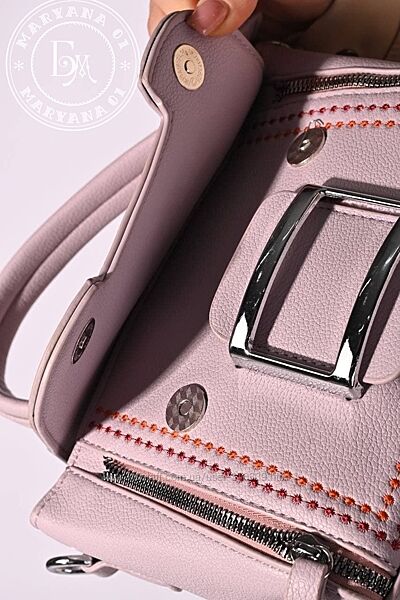 Передній клапан прикрашений гарною декоративною пряжкою, а по периметру сумочки проходить контрастна вишивка, яка додає виробу вишуканого шарму. З’ємний довгий ремінець — можна носити через плече або в руках. Сумочка є вмісткою та універсальною, ідеально підходить як для повсякденних образів, так і для вечірніх виходів.
