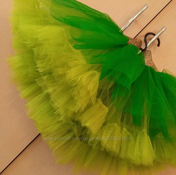 Фатинова, пишна спідничка пошита власноруч. Зелено салатова на золотій резинці. Чудово підійде для образу ялинки чи ельфа!!! Або просто для свята.Вік від 3 до 6 років. Загальна довжина 28см. В талії 48( резинка тягнеться)