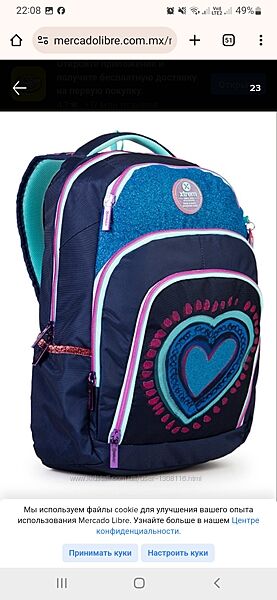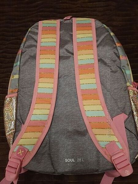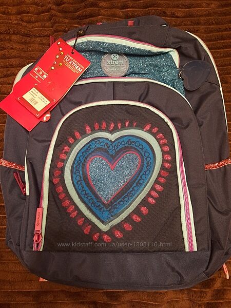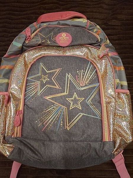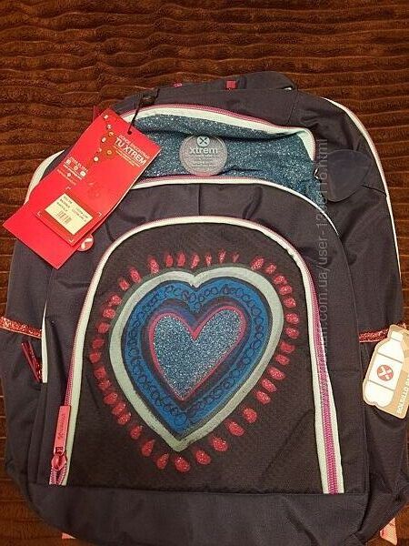Рюкзак 48х30х12см.Емність 28л. Спинка ущільнена. Спереду два відділення на молніях. По боках- два кармани. Всередині велике відлілення, друге відділення для зошитів. Є відділення для ноутбука.В наявності 2 рюкзаки. Синій з сердечком та сіророжевий.