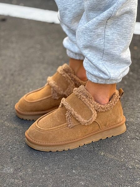 Подробное описание: Зимові коротенькі замшеві угі на липучці Зимові туфлі черевики