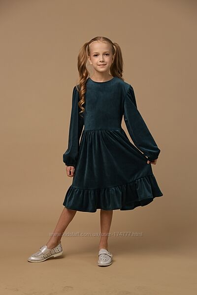 В наявності ✅️128,134,140,146,152 розміри❄️🎄Вишукана сукня на свято з плотного якісного велюру. Колір темно-зелений.
