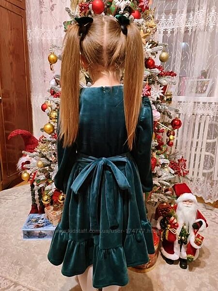 Подробное описание: Дитяча святкова оксамитова сукня зелена новорічна для дівчинки, 7-12 років
