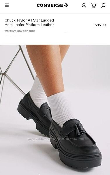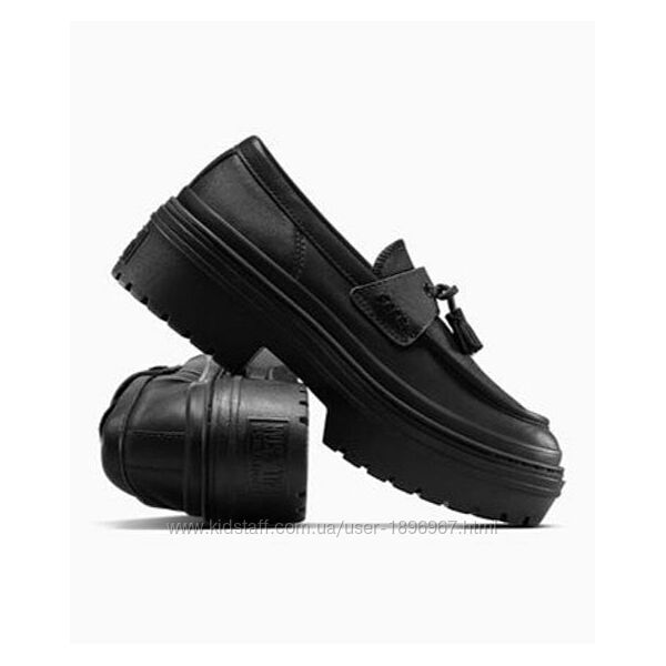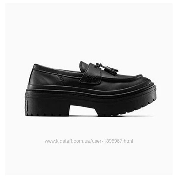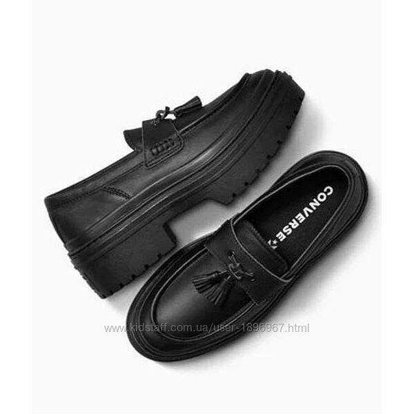 В наявності чорні шкіряні лофери на платформі від ConverseПопулярність взуття бренду Converse залишається високою, незважаючи на те, що перші кросівки були випущені у 1917 році