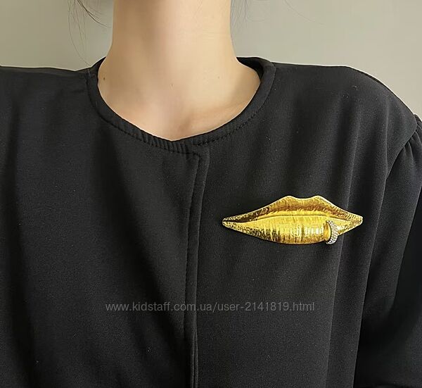 Массивная брошь в виде губ schiaparelli, брошка губы золотая стильная брошь