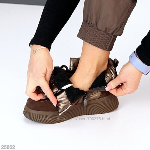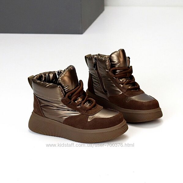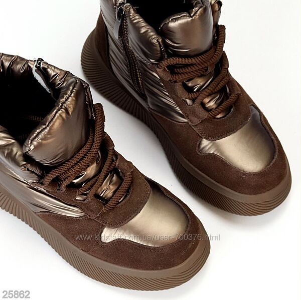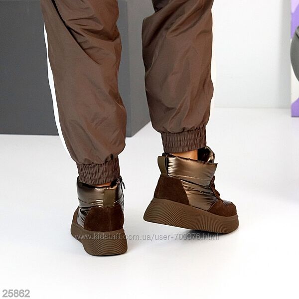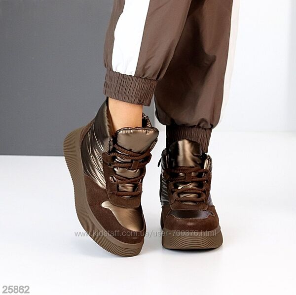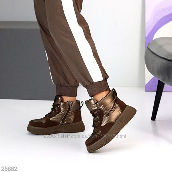 Кросівки - дутики Vorins, натуральна замша/плащівка, бронза