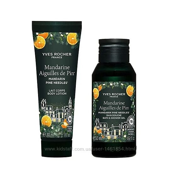 Набір мініпродуктів Мандарин і хвоя: гель для душу, молочко для тіла в кулі Ів РошеДо складу набору входять: