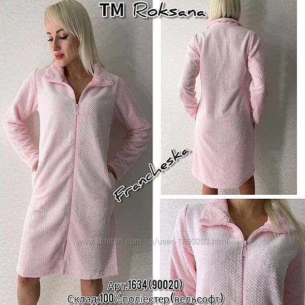 Ніжний та комфортний жіночий халат із високоякісного вельсофту (арт.1634) від українського виробника ТМ Roksana — ідеальний вибір для домашнього затишку в будь-яку пору року.Неймовірно затишний халат виготовлений із м’якого 100% поліестеру (вельсофт) ніжно рожевого кольору, який не витягується й не втрачає колір. Тканина вельсофт відома своїм плюшевим ефектом, добре зберігає тепло, не викликає подразнень та чудово підходить навіть для чутливої шкіри.