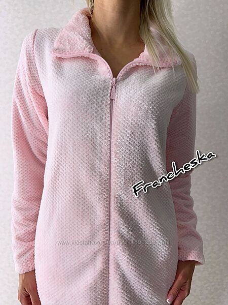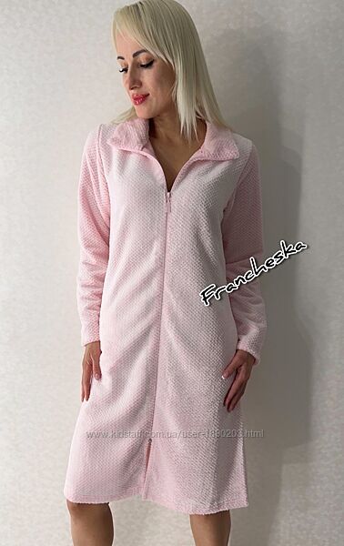 Подробное описание: Жіночий рожевий плюшевий халат на блискавці ТМ Roksana розмір S-3XL