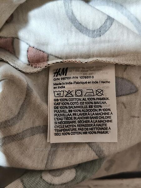 100% котон. Злегка тягнеться.Розмір 98-104: довжина 41 см, ширина 32 см, рукав 33 см.