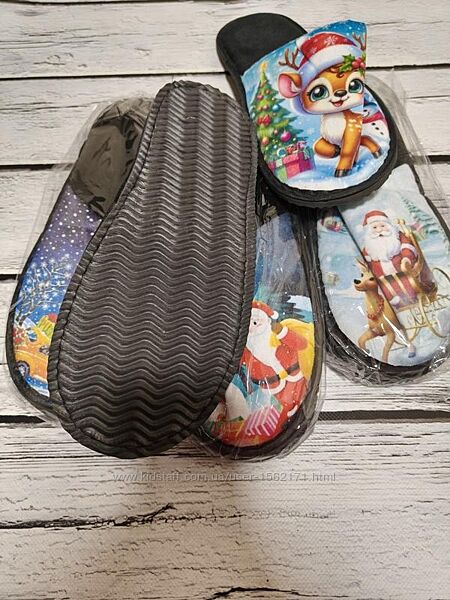 Чоловічі теплі домашні тапочки новорічні кімнатні капці для гостей