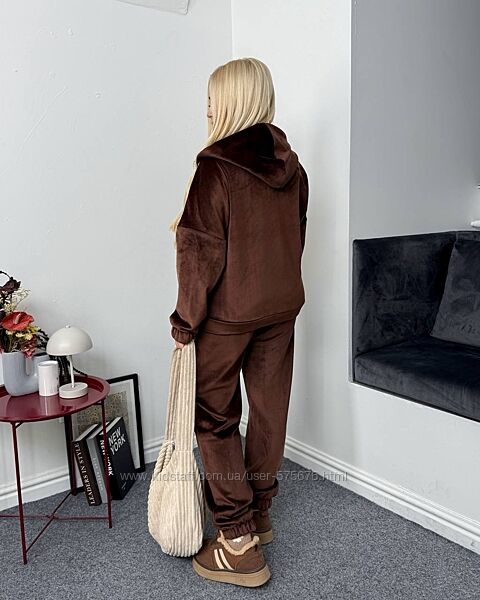 Подробное описание: р.46 до 56р. Велюровий теплий костюм на флісовій основі з капюшоном