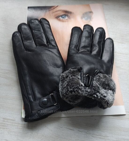 Подробное описание: Чоловічі шкіряні рукавички зимові чорні на штучному хутрі
