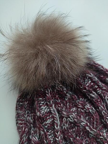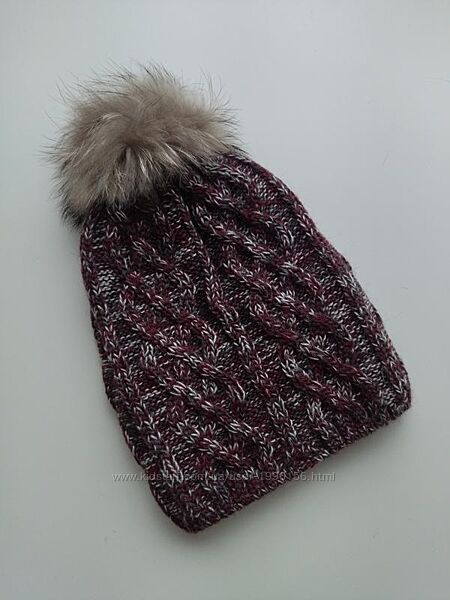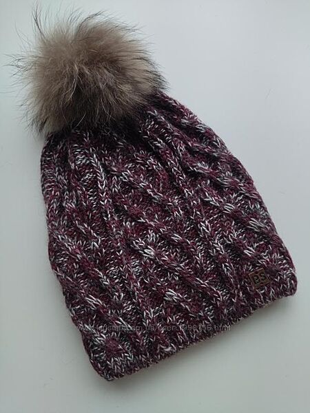 Подробное описание: Жіноча напіввовняна шапка з помпоном та підкладкою меланж італія