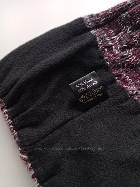 Шапка нова, без паперової етикетки (не секонд). Усередині, до середини шапочки, підкладка на флісі (на останньому фото шапка вивернута навиворіт). Склад: 50% шерсть, 50% акрил.