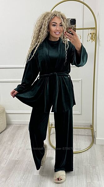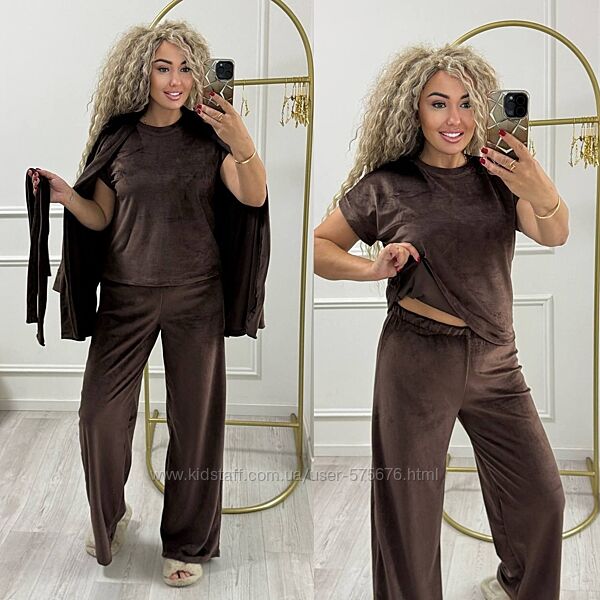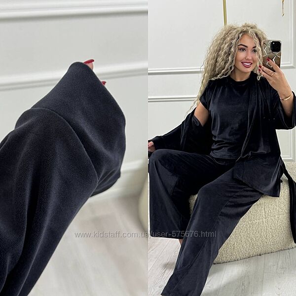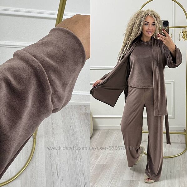 Подробное описание: р.42 до 56р. Костюм трійка велюр халат, брюки, кофта
