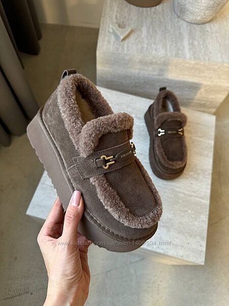 Подробное описание: Коричневі лофери угги нат. замша, зимові лофери коричневі 36-40р код 13176