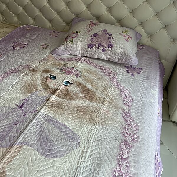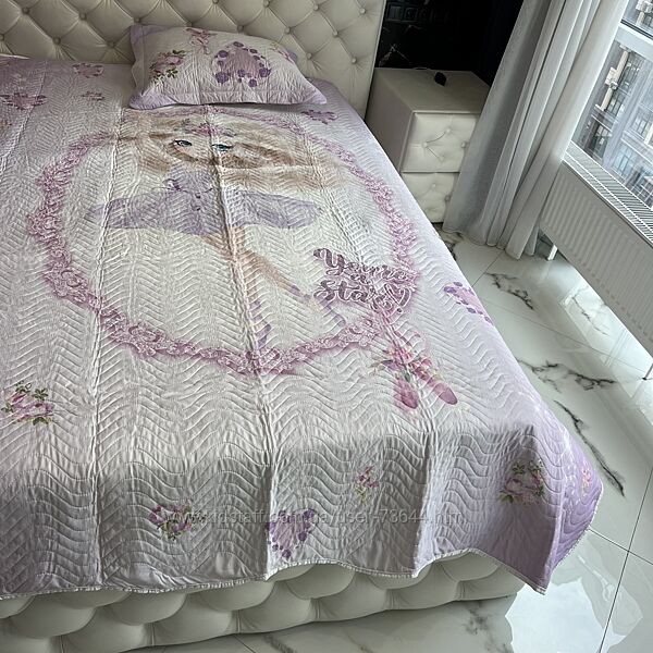 Подробное описание: Покривало 175х240см стьобане з наволочкою для дівчинки рожеве, лілове. Miss
