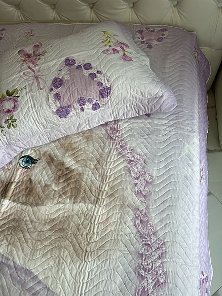 Покривало 175х240см стьобане з наволочкою для дівчинки рожеве, лілове. Miss