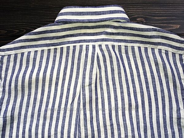Шикарная льняная рубашка от всемирно известного американского бренда Polo Ralph Lauren®. Размер указан XL TG EG, - наш -52 (замеры внизу описания). Очень красивая, качественная, эксклюзивная. Модель Custom Fit с воротником Button-Down. Цвет рубашки: серенево-белая полоска. Материал 100% - тонкий лён высочайшего качества. Низ слегка полукруглый. Состояние Сток, новая, без магазинной бирки. Производство Индия. Цена на официальном сайте от 160$. Замеры: ширина в плечах 50,5см; ширина по спине ( от подмышки до подмышки )- 64см; ширина по талии 63см; ширина по низу 64см; длина рукава по внешнему/внутреннему шву- 69/56 см; общая длина рубашки 85см; ворот 43-44 см.