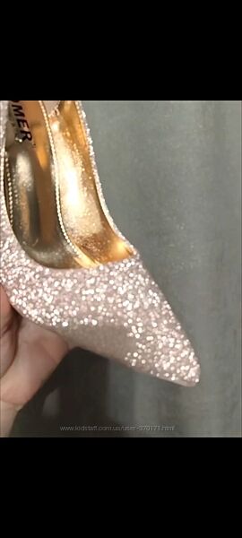 Подробное описание: Святкові Туфлі в блискітках кольору Шампань