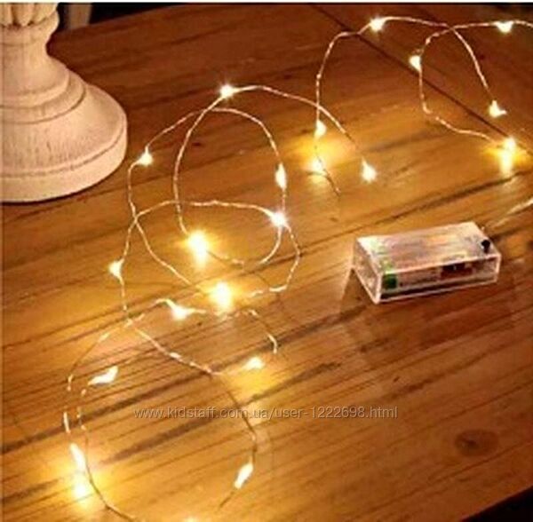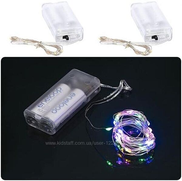 Гірлянда "Роса" на 2-х батарейках 20 лампочок 2 метри мультиколір Гірлянда з 20 мікролампами довжиною 2 метри. Живлення від 2 батарейок АА (батарейки не входять у комплект). Режим постійне мультиколірне світло. Використовується для прикраси новорічної ялинки, інтер´єру або вікон. Ціна 16 гривень.Гірлянда "Роса" на 2-х батарейках 30 лампочок 3 метри мультиколір Гірлянда «Роса» довжиною 3 метри з 30 різнокольоровими мікролампами. Живлення здійснюється від 2 батарейок типу AA (у комплект не входять). Лампочки світять у режимі постійного мультиколірного світіння, створюючи м’яке декоративне освітлення. Виготовлена з гнучкого тонкого дроту, що дозволяє надавати гірлянді будь-якої форми. Ідеально підходить для прикрашання інтер’єру, новорічної ялинки, вікон або фотозони Ціна 26 гривень.