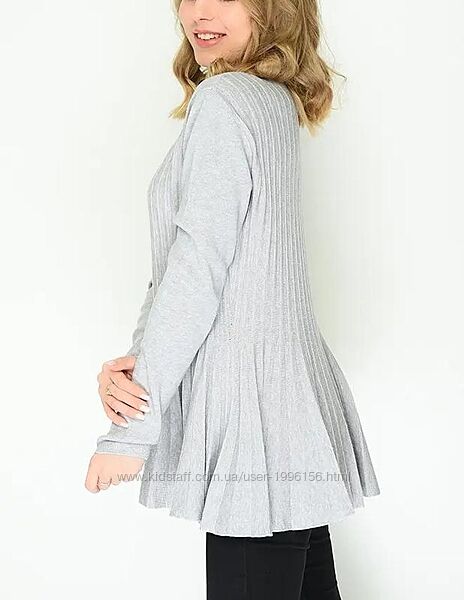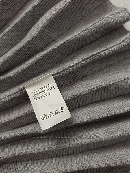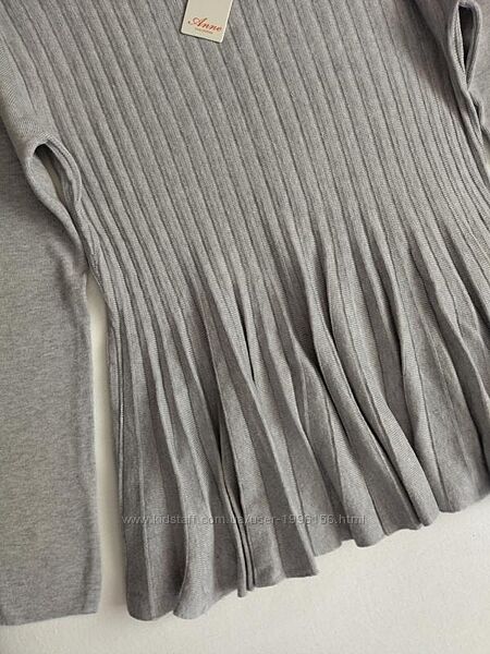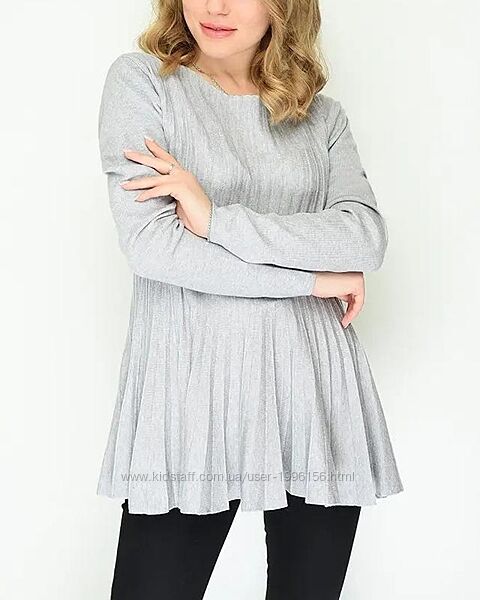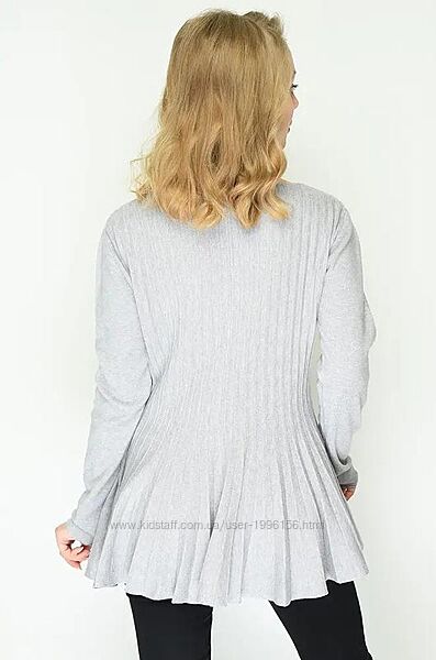 Кофточка світло - сірого кольору, внизу плісе. Тканина не щільна, тягнеться. Розмір вказано L/XL, але скоріш за все маломірить, орієнтовно буде на S/M розмір. Весь одяг зберігається у складеному вигляді, потрібно буде відпарити чи прогладити (якщо це передбачено виробником).