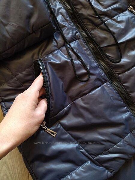Курточка легенька, спереду трішки коротшого пошиву ніж ззаду, капюшон незнімний. Застібається на блискавку, спереду дві кишені також застібаються на блискавку, є підкладка в області жилетки (рукава без підкладки). Розмір вказано М, але скоріш за все буде на менші розміри. Весь одяг зберігається у складеному вигляді, потрібно буде відпарити чи прогладити (якщо це передбачено виробником).