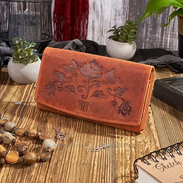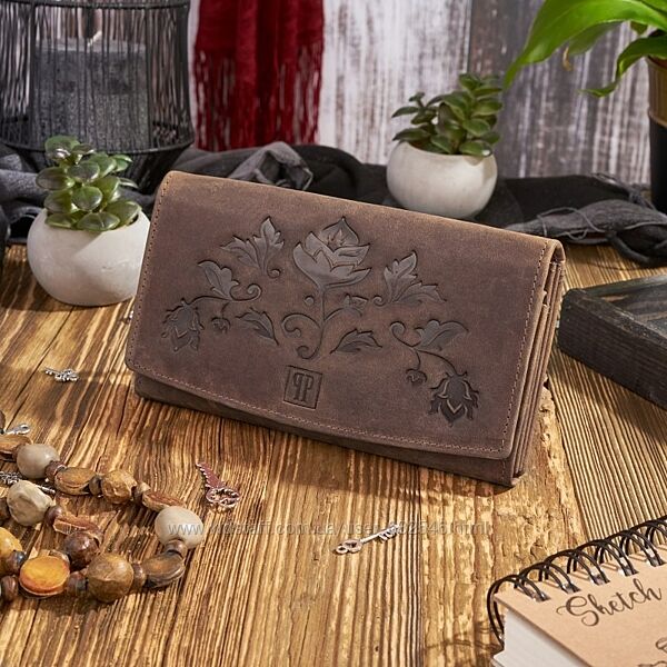 Елегантний шкіряний жіночий гаманець у ретро-стилі з оригінальним квітковим тисненням спереду. Всередині гаманця відділення для монет, що застібається на кнопку, два відділення для банкнот, шість кишень для кредитних карток, напівпрозора кишеня та п´ять відділень, у тому числі два на блискавці. Застосовується захист RFID, що забезпечує захист від крадіжки конфіденційних даних із кредитних карток. Кожен гаманець Paolo Peruzzi упакований у фірмову подарункову коробку. Розміри: 17,0*10,0*3,0см.