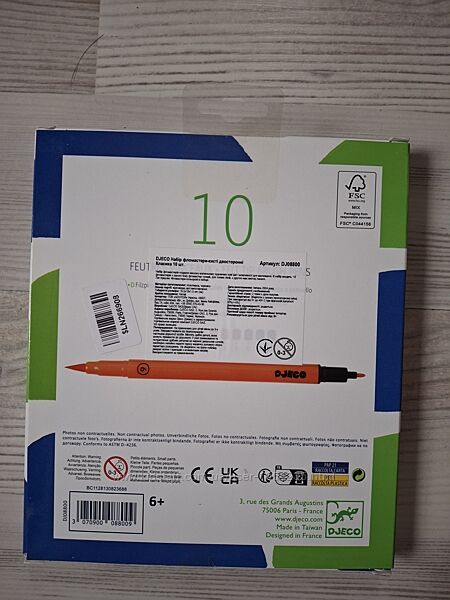 Продам набор качественных фломастеров-кисточек двусторонних Djeco "Классика" 10 штук. Пробудить в ребенке творческие способности и привить ему хороший вкус поможет набор фломастеров. Это набор, который будет способствовать проявлению детской фантазии. Все дети любят рисовать и важно дать им возможность для создания своих творений. Чем больше у ребенка разных инструментов, цветов и фактур, тем больше интереса к творчеству. В комплект входят 10 двусторонних фломастеров основных цветов. В зависимости от того, какой стороной будет рисовать малыш, линии разной толщины. Один конец заостренный и предназначен для рисования тонких линий, а второй имеет кисточкообразную форму для толстых линий. Цена: 400 грн.Набор новый, фломастеры в коробке. Коробка не имеет упаковочной пленки, так как это не предусмотрено производителем.
