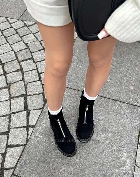 Подробное описание: Ботінки жіночі зима на хутрі чорний замш середу змійка