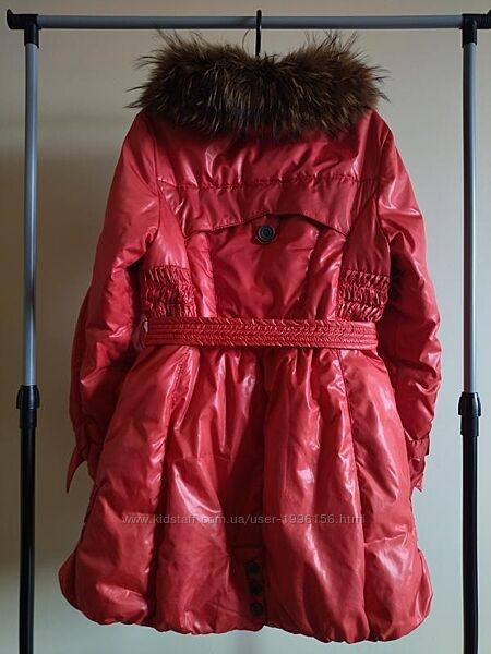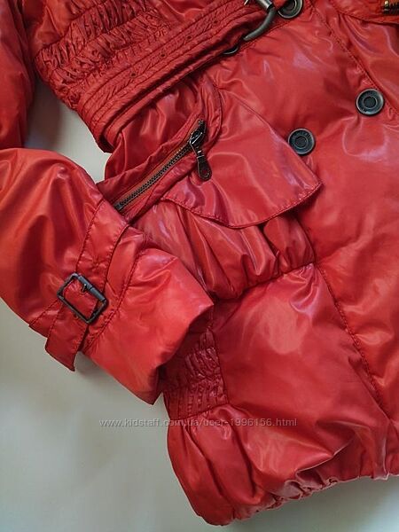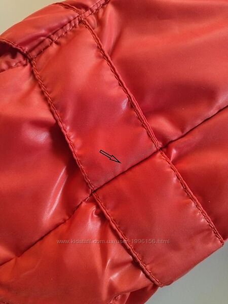 Є нюанси, подекуди залишилися невеликі сліди забруднення, приклад показано на останньому фото. Курточкака з хутряним коміром (достовірно що за хутро не знаю), комір відстібається, без капюшона, застібається на кнопки. Шия V подібна, тому потрібен буде шарфик. Спереду дві кишені декоровані блисківками. Ззаду куртка декорована кнопками, одна в області спини та три знизу. Розмір вказано 40 (розмірна сітка якої країни малась на увазі невідомо). Орієнтовно буде на S розмір. Весь одяг зберігається у складеному вигляді, потрібно буде відпарити чи прогладити (якщо це передбачено виробником).
