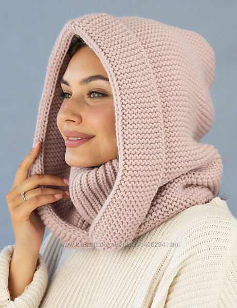 Подробное описание: Капор женский вязаный теплый Лея светлая пудра