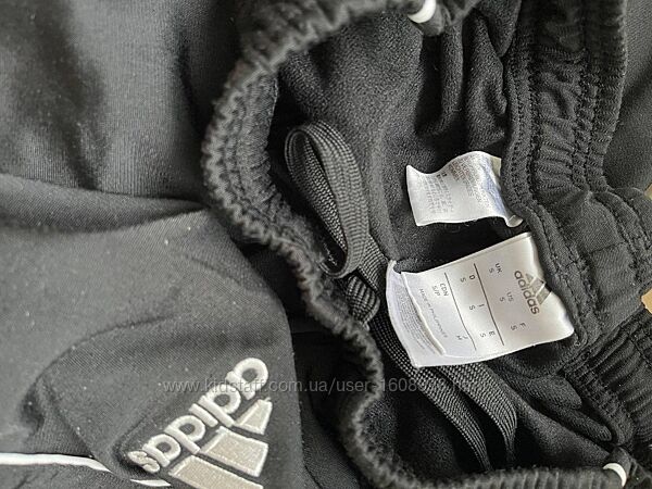 Спортивні штани Adidas. Внизу штанини резинка. Є кармани. Розмір S. Висота 102 см Висота посадки зпереду 28 чм, Висота посадки задньої частини 35 см, ПОТ 32 см, ПОБ 54 см.
