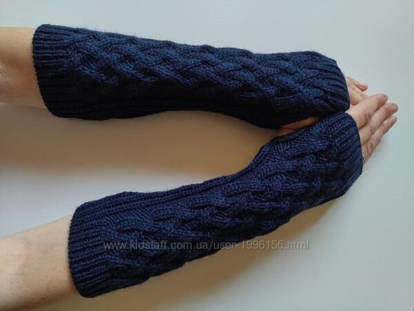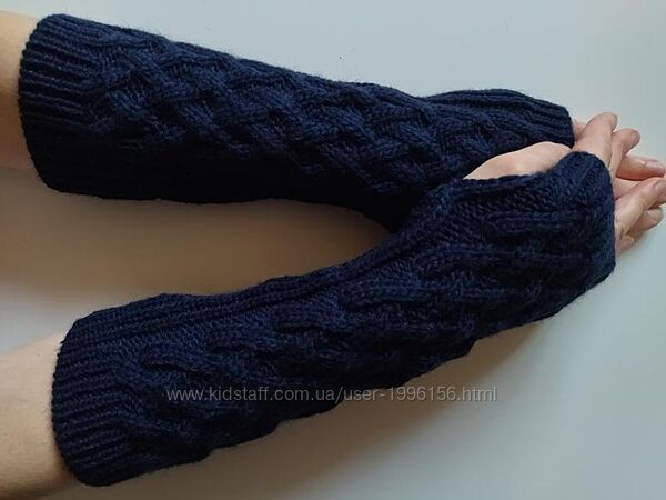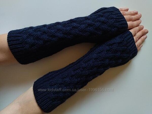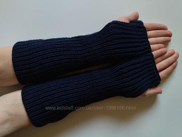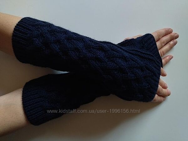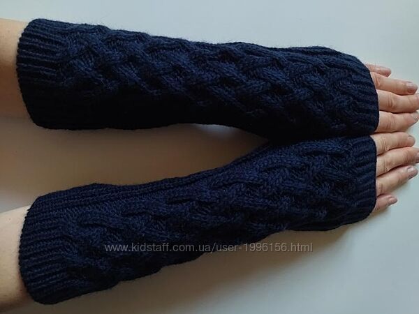 Мітенки (рукавички без пальців), доволі щільні, теплі, велика в´язка. Довжина - 32см. (виміри можуть відрізнятися +/- 1-2 см). Бірки із складом, на жаль, немає.