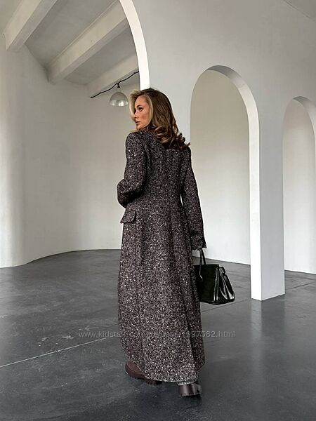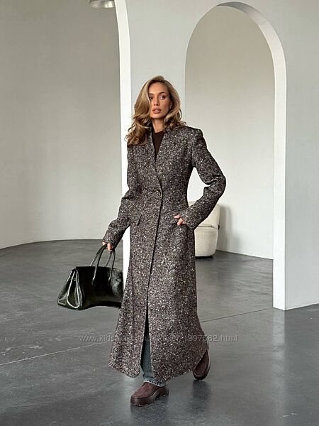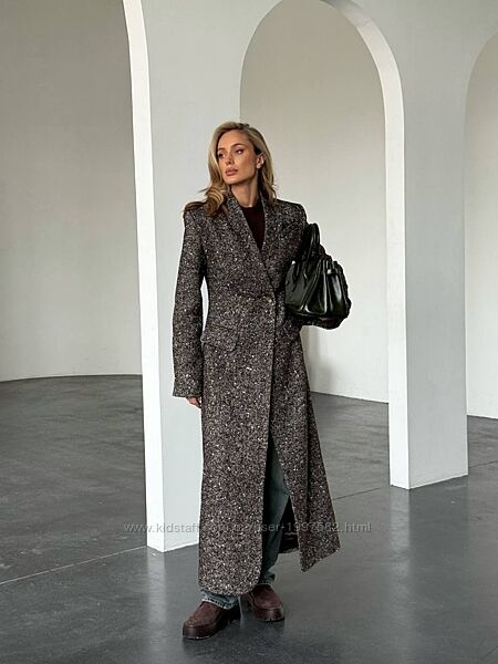 Подробное описание: Зимове пальто. Подовжений силует, витончені лацкани. Пальто виготовлене з я