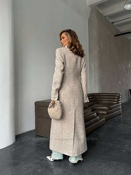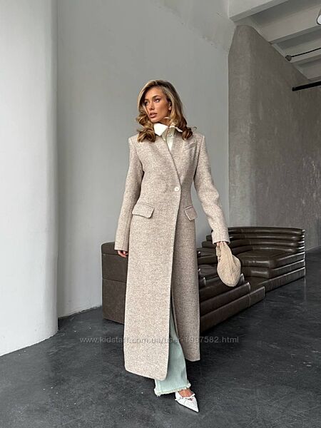 Зимове пальто. Подовжений силует, витончені лацкани. Пальто виготовлене з я