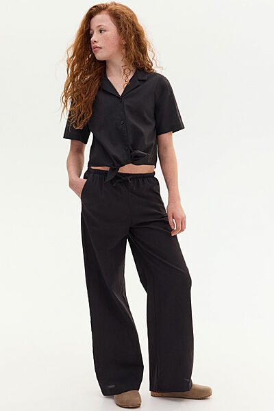 Подробное описание: Штани Кльош із суміші льону та бавовни для дівчинки H&M Relaxed fit 1272707-001 чорний