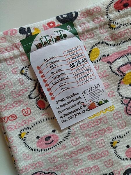 Кофточка застібається на гудзики, тканина тягнеться зовсім трішки (майже не тягнеться), 100% бавовна з начосом. Шапочки на зав´язках, з начосом, розмір не вказано (всі однакові).