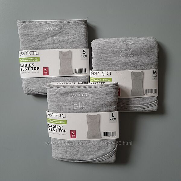 Подробное описание: Жіноча бавовняна майка на широких бретелях Esmara Німеччина, S, L