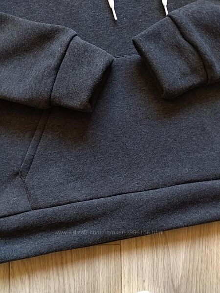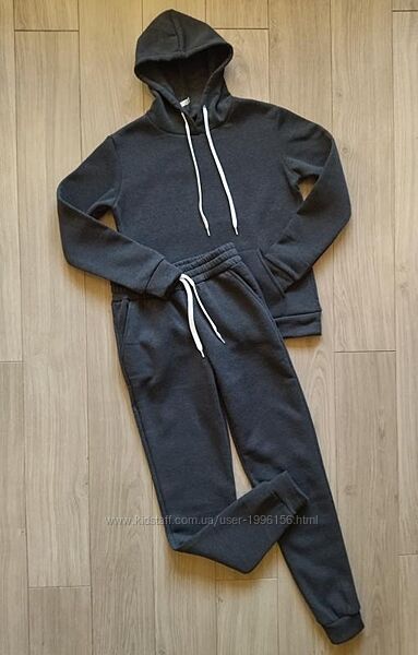 Костюм новий, без паперової етикетки, на флісі. Кофта - худі з капюшоном та кишенею кенгуру. Штани - пояс на резинці та шнурівці, спереду дві кишені (кишені без застібок), низ штанин манжета. Бірки зі складом тканини немає (орієнтовно поліестер), трохи тягнеться. Чи буде кошлатитись тканина, на жаль, не знаю. Костюми легкі, не сильно щільні. Розмір вказано 50, але може маломірити.
