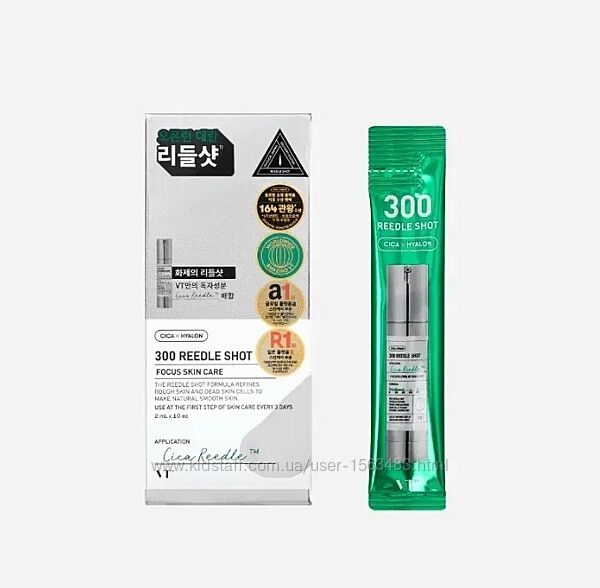 VT Cosmetics Reedle Shot 300 Stick 2ml – стік із сироваткою зі спікулами (300): у сироватці використовують інгредієнти у формі мікроголок, які забезпечують краще поглинання та ефективність, сприяє активації клітин;містить малі молекули, що краще проникають у шкіру;зволожує, заспокоює та живить шкіру;покращує вбирання та дію наступних етапів вашого догляду;легка текстура, швидко вбирається.Ключові інгредієнти: екстракт центелли азіатської – зменшує подразнення та почервоніння, відновлює шкіру;низькомолекулярна гіалуронова кислота – маленькі молекули зволожують шкіру;екстракт прополісу – антисептична та протизапальна дія;амінокислотний комплекс – зволожують, доглядають за барʼєром шкіри, надають антиоксидантну дію, протизапальну.Обʼєм: 1 шт або набір з 10 шт; 1 шт- 2 мл. Спосіб використання: використовувати ввечері після етапу очищення шкіри, до нанесення доглядових засобів, 1 раз на 3 дні, не частіше. Втирайте продукт масажними рухами та обережно поплескайте для кращого вбирання. Відчуватиметься легке покалування, це нормальна реакція шкіри. Після нанесіть зволожуючі засоби. Вранці обовʼязково нанесіть спф. Після використання засобу може зʼявлятись лущення, адже відлущуються мертві клітини, тож зволожуйте шкіру. Одночасно використовувати засоби зі спікулами в різній концентрації не рекомендовано! Після того, як шкіра звикне, Ви можете перейти на сироватку з більшою концентрацією спікул.